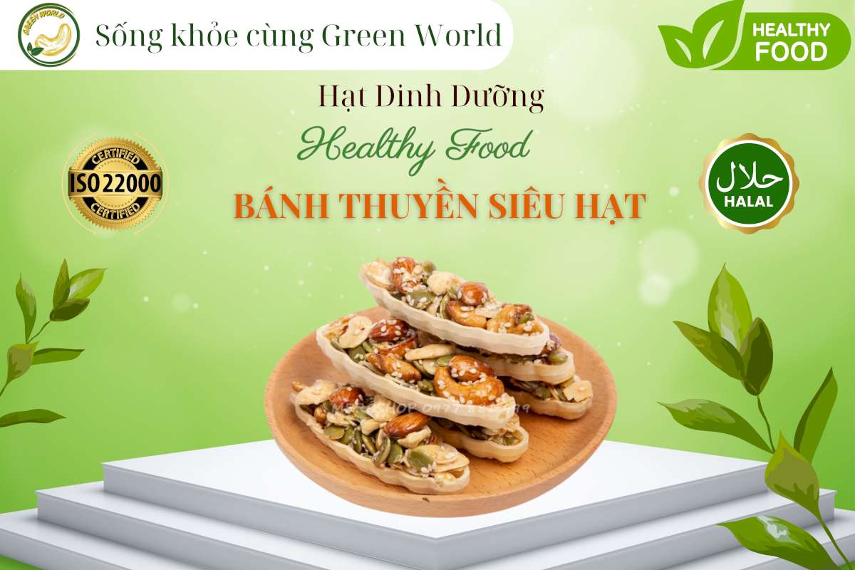 Bánh Thuyền Mix Hạt là món ăn vặt lành mạnh, giòn thơm, kết hợp giữa đế bánh mỏng và các loại hạt dinh dưỡng như hạnh nhân, hạt điều, óc chó, gạo lứt, nho khô… thường được nướng cùng mật ong hoặc mạch nha. Đây là lựa chọn phổ biến cho người ăn kiêng, eat clean, hoặc làm quà tặng dịp lễ Tết.