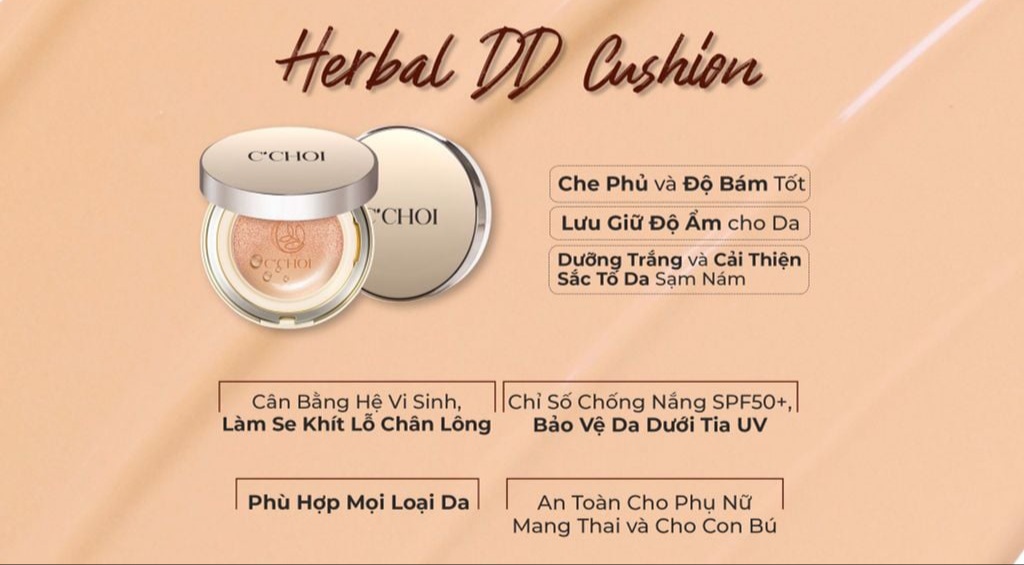 💎 Phấn Nước C'Choi Herbal DD Cushion là phấn nước trang điểm của thương hiệu Mỹ phẩm xanh C’Choi. Có khả năng che phủ và bám tốt, tạo lớp trang điểm tự nhiên, mỏng nhẹ không gây khó chịu cho da. Chỉ số chống nắng SPF lên đến 50 và PA+++ giúp làn da tránh các tác hại từ tia UV.