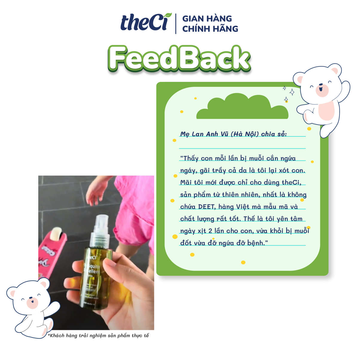 💎 Xịt Muỗi theCi Cho Bé Mosquito Repellent Spray Đuổi Muỗi Ngăn Côn Trùng, An Toàn Cho Bé 50ml với thành phần chính là Tinh Dầu Bạch Đàn Chanh chứa hoạt chất PMD (hay Citriodiol) lên đến 64%.